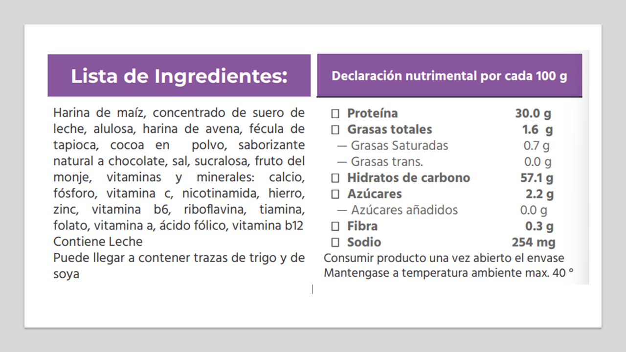 Sabor chocolate con cocoa natural.